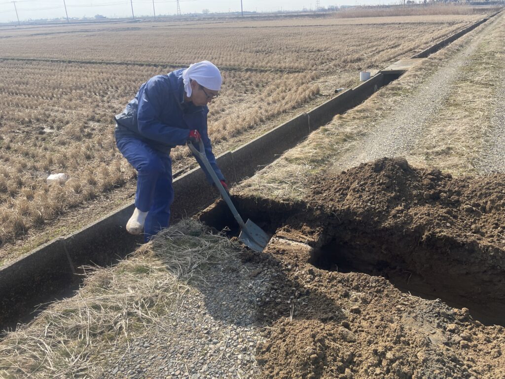 この日は佐藤さんに岡田が同行し、「溝切り」という貴重な体験をさせていただきました。
