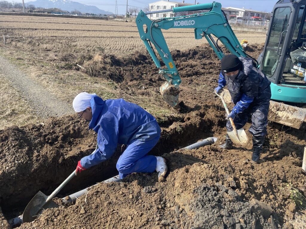 3月 休耕田の雑草を除去、農業用水を引き入れる配管を設置!!