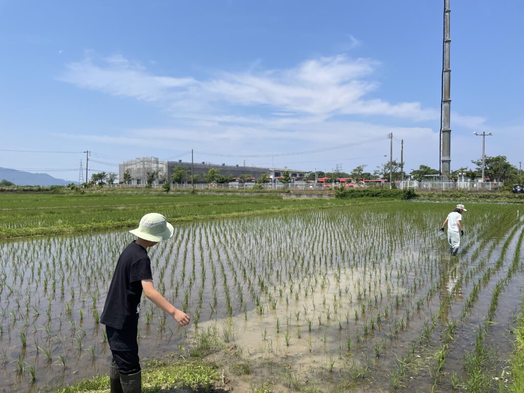 今年度、スクールの子どもたちと初めて田植え体験を行いました。