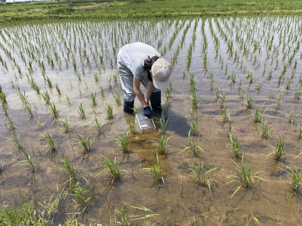 佐藤さんは忙しい合間を縫って3日に一回は田んぼを訪れて点検。