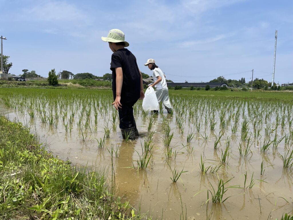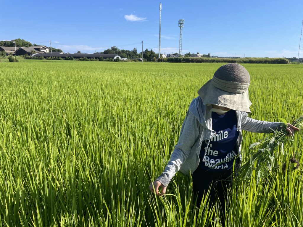 私たちは1週間に1回を目標に田んぼに行き、水田に入って一生懸命雑草を抜き続けました。